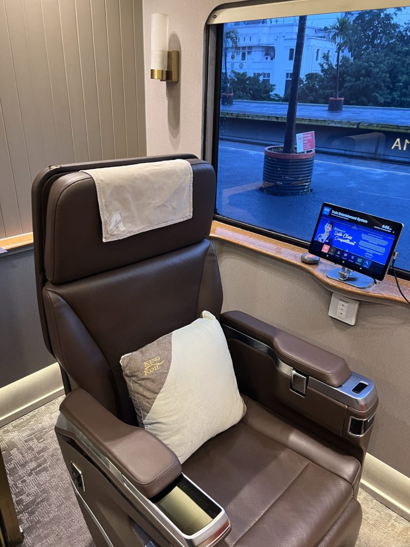 今回は、飛行機チケット料金と大差なかったので、一番豪華なコンパートメントスイートを予約しました!!座席は全部で16席しかないので、2か月前頃から予約することをお勧めします。コンパートメントスイートを予約すると、lounge利用が可能です。