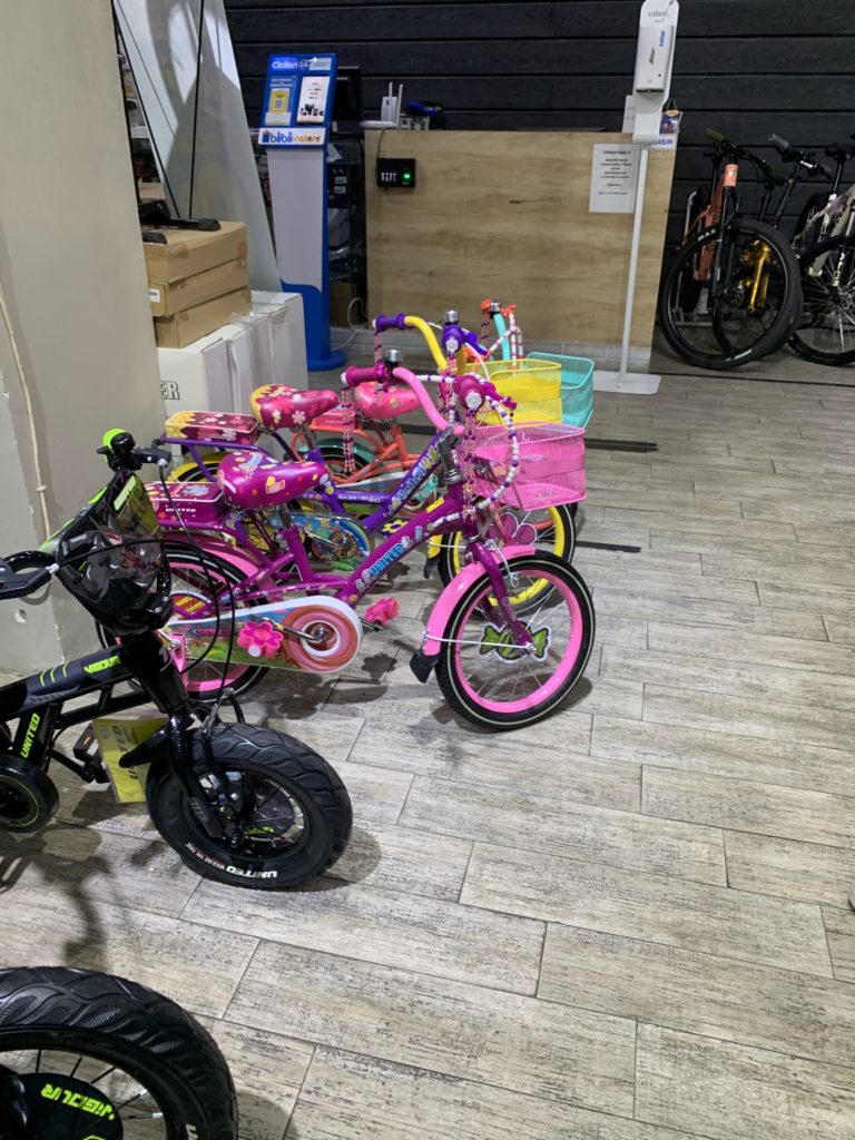 以前の自転車はイオンモールで1.2Juta(8200円くらい)で購入した派手な子供用自転車でしたが、補助輪も外れたので、もう少しお姉ちゃんの自転車を探しに、BUILD A BIKEへ行ってみました。ほかにもSCBDやモールの中にも自転車ショップはあるのですが、大人用が主流です。