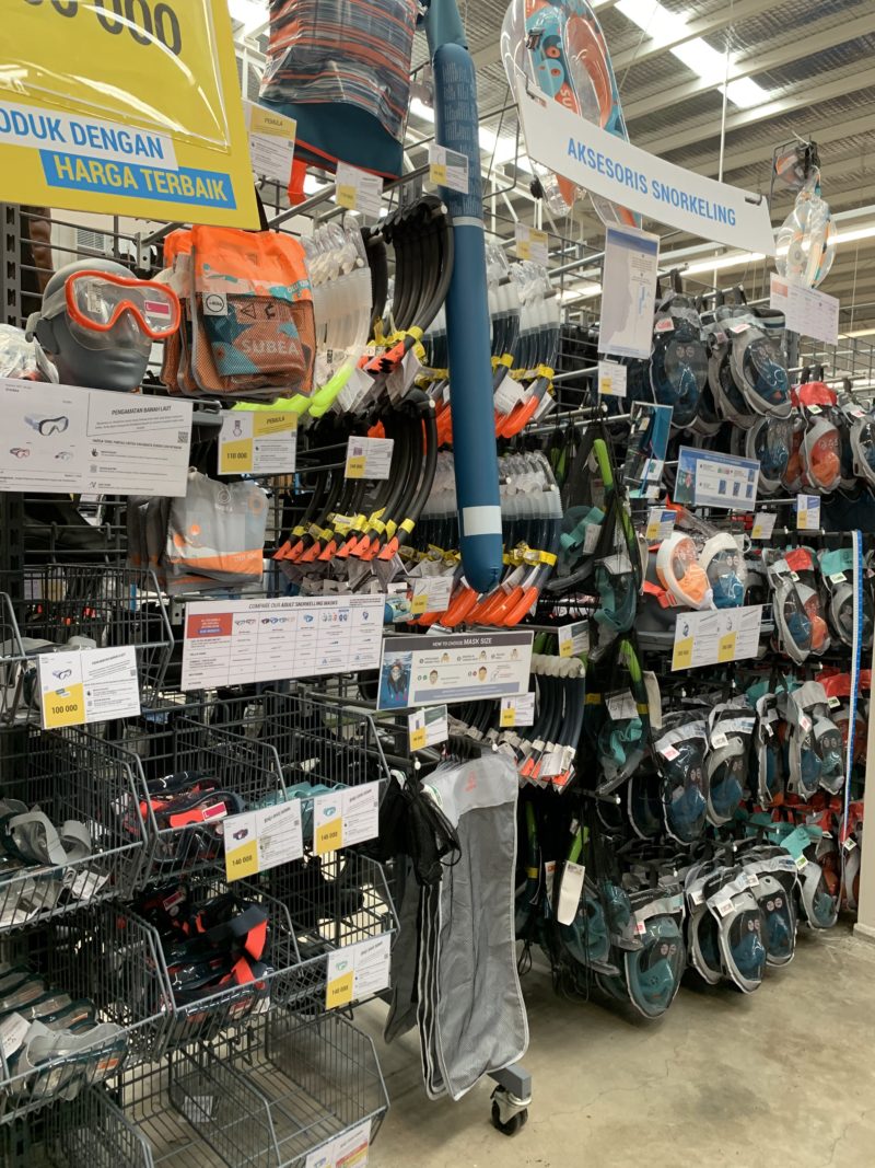 来週の旅行のために、シュノーケル用品を探しに大型スポーツ用品店へ行ってきました。コロナ禍ということもあり、貸出のものに躊躇してしまい、今回初めて購入することにいたしました。